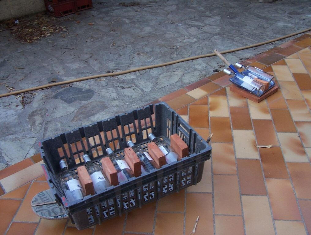 Deux avions origamis en plâtre, une paire de chaussure, une bougie et deux trous bouchée dans le mur du couloir